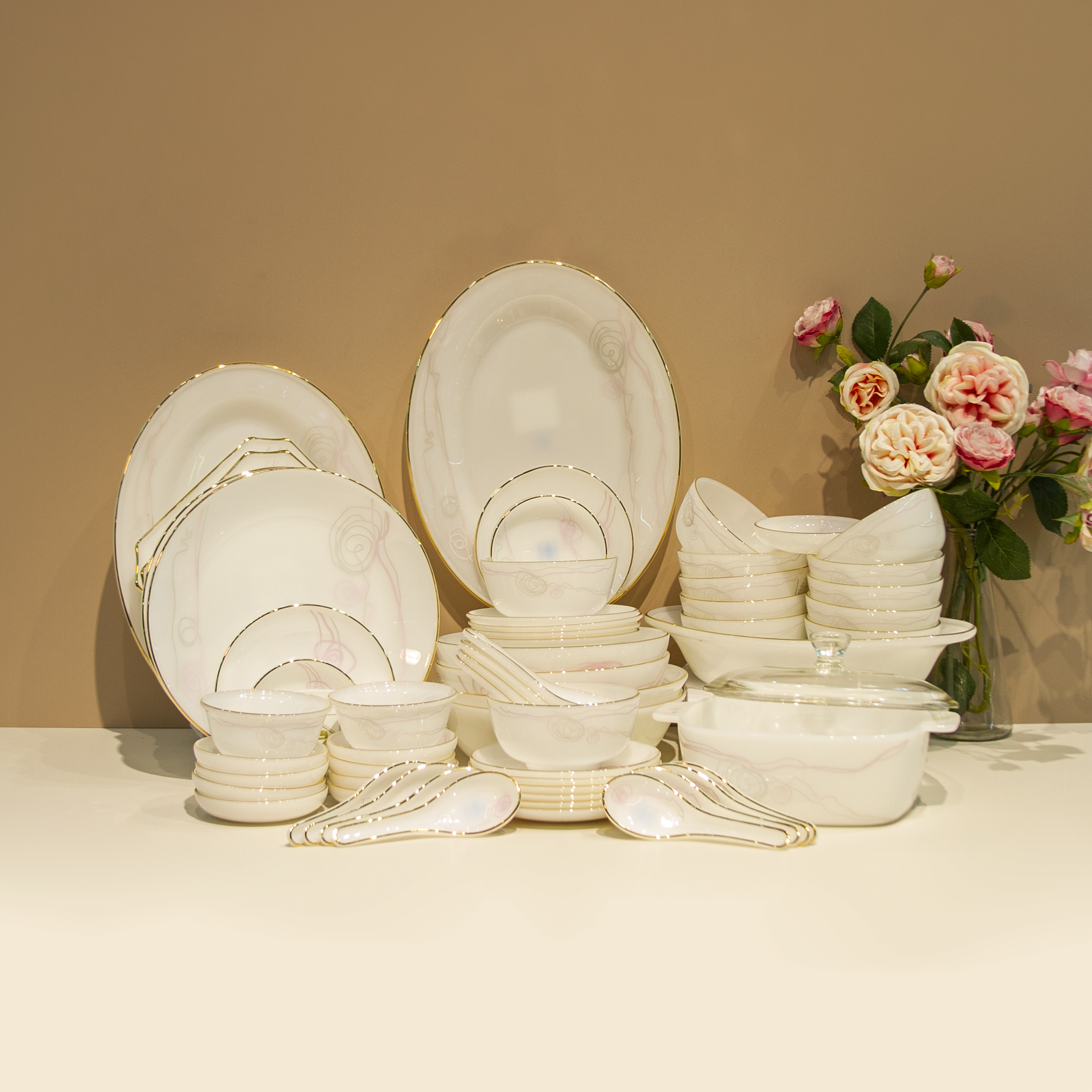 Bộ đồ ăn/bát đĩa 62 sản phẩm hoa dây huyền bí