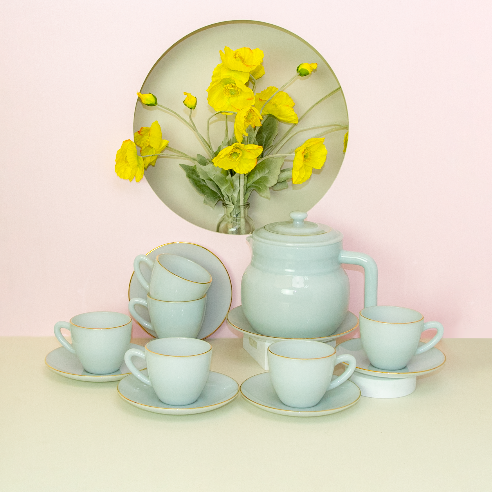 Bộ Cafe màu Xanh biển Aquamarine Bằng Thủy Tinh Opal MP - USA Home Set