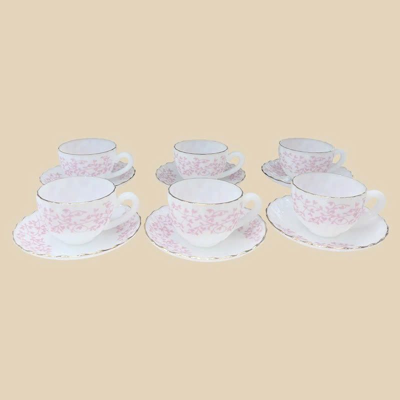 Bộ tách cafe dáng xoắn họa tiết hoa dây hồng