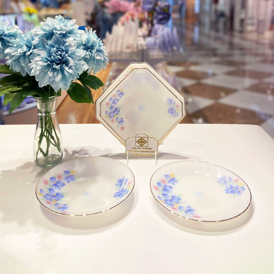Bộ set đĩa ngọt ngào gồm 2 đĩa vuông, 1 đĩa sâu và 1 đĩa tròn nông